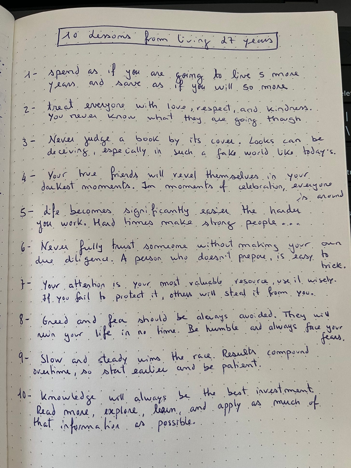 Today, I decided to put together 10 of my biggest lessons from living these 27 years.